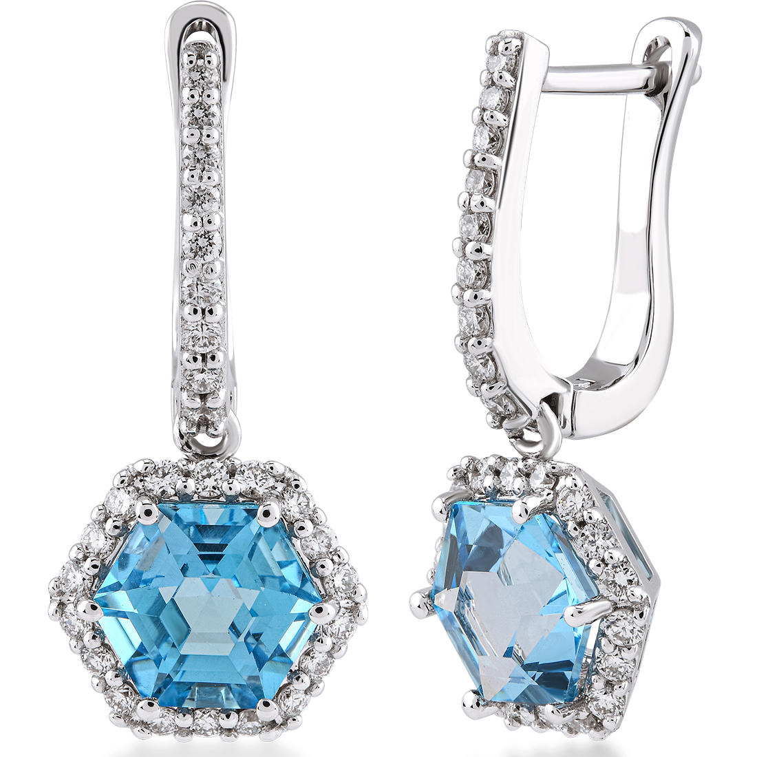 2,63 Karat Hexagon Pırlanta Blue Topaz Küpe