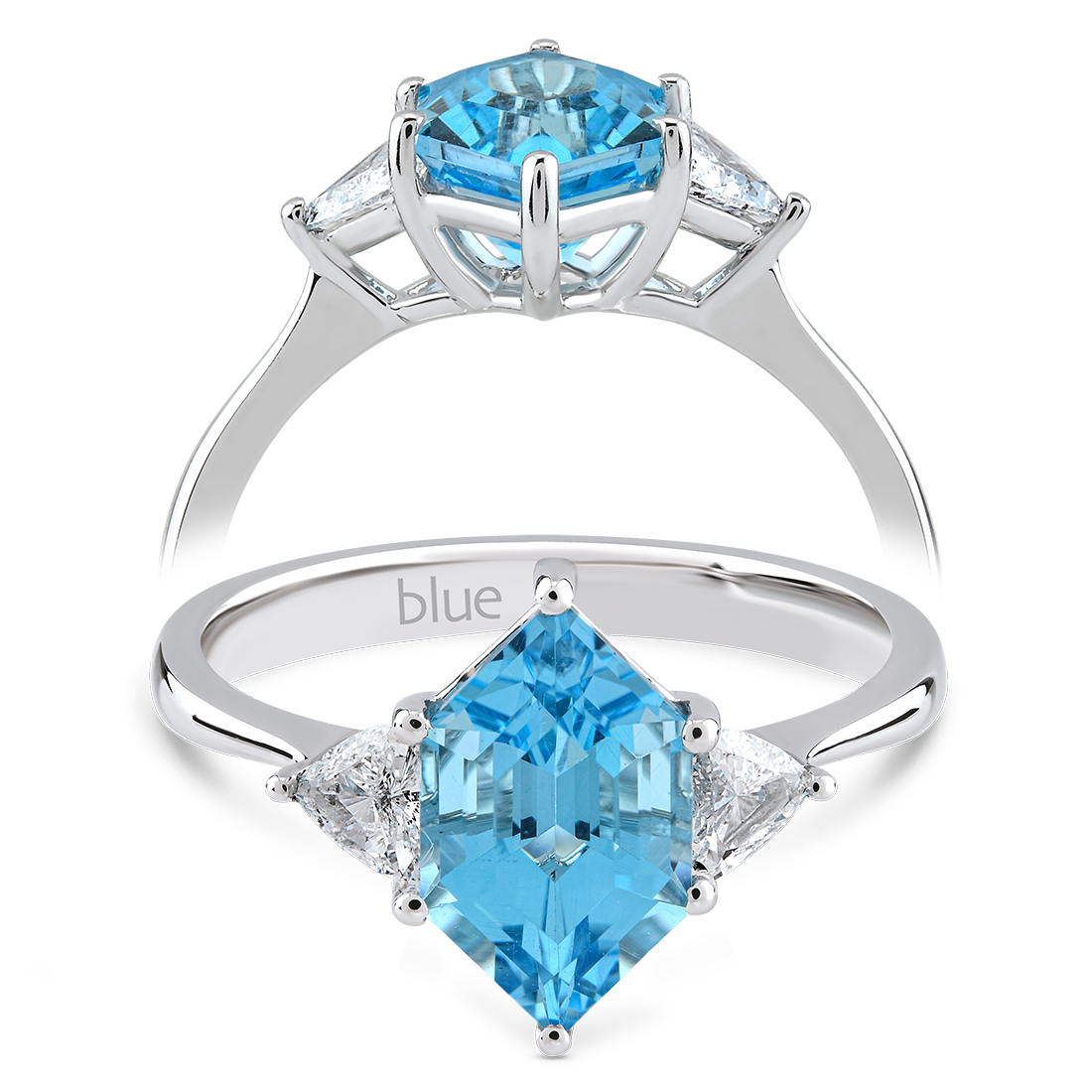 2,07 Karat Hexagon Pırlanta Blue Topaz Yüzük