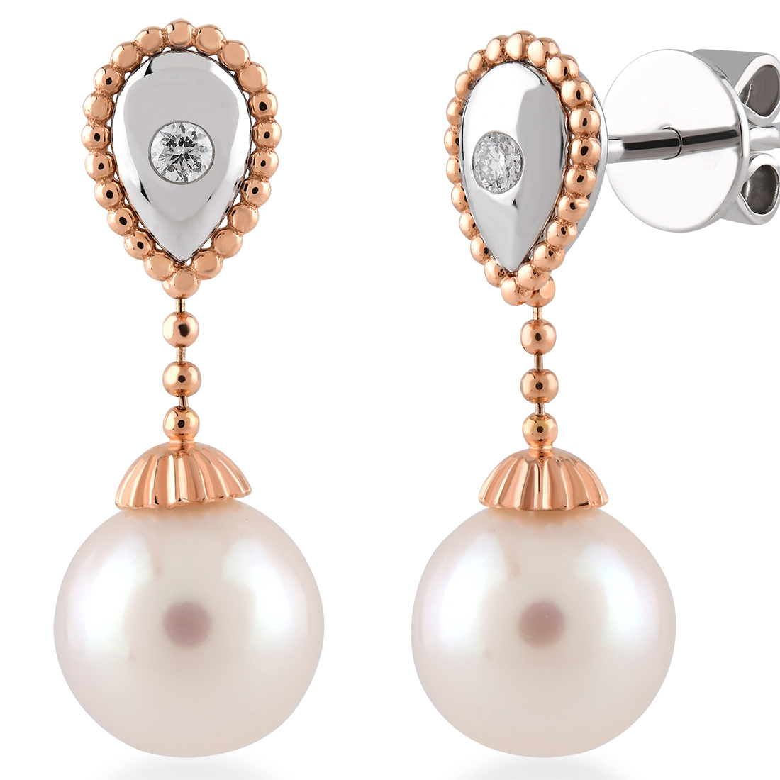 0,03 Karat Pırlantalı İnci Küpe